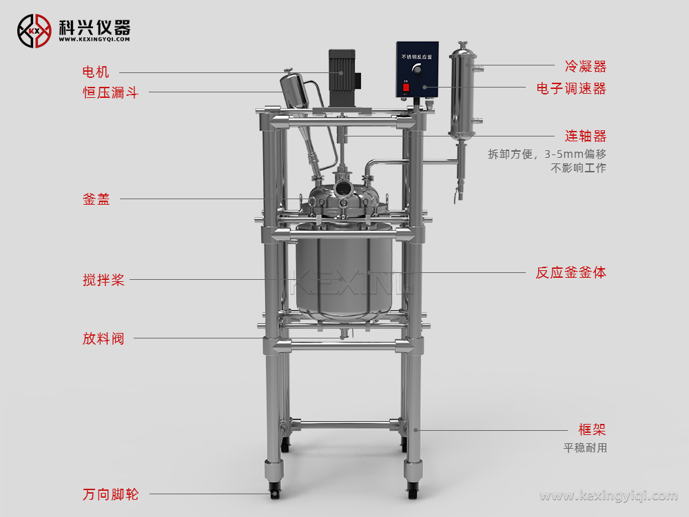 上??婆d儀器生產(chǎn)雙層不銹鋼反應(yīng)釜主要用于制藥、化工、實驗室等機(jī)構(gòu)的有機(jī)合成實驗室用中式設(shè)備,用于有機(jī)物合成實驗中,是生化制藥中的主要設(shè)備之一。