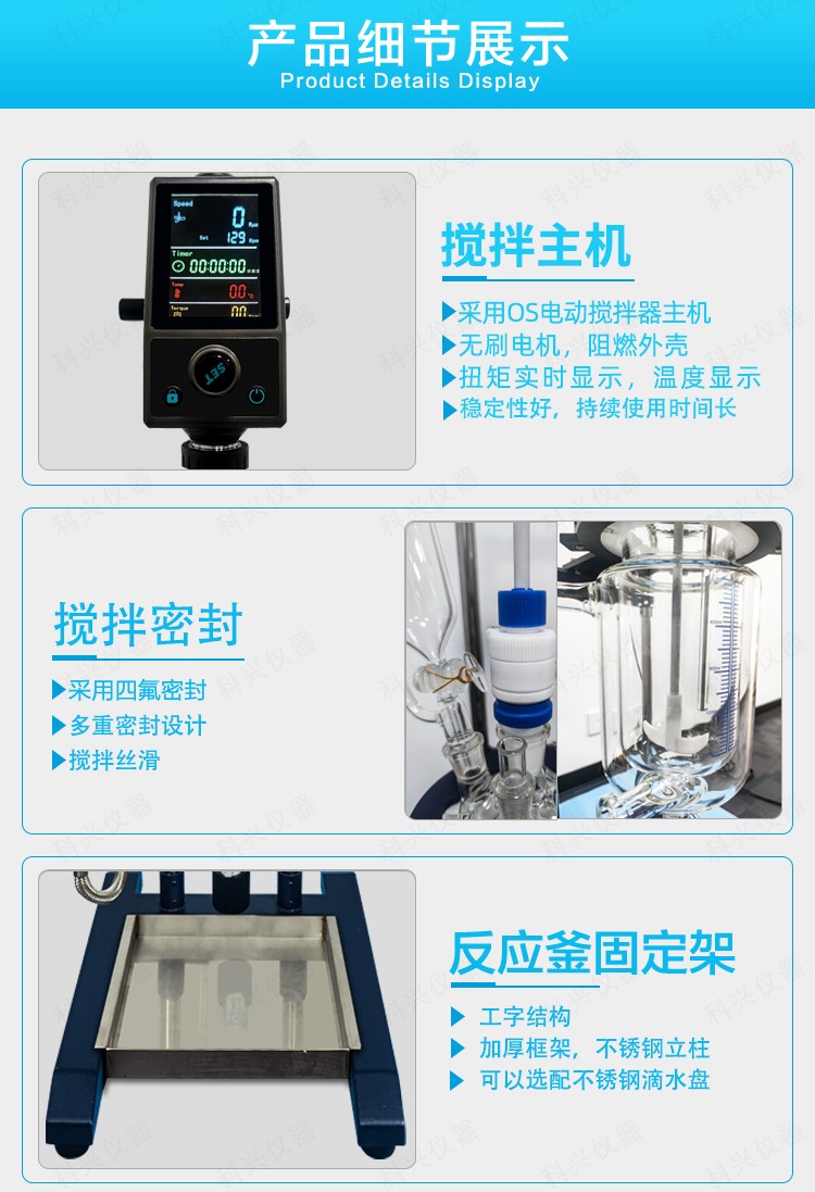 公司又根據(jù)客戶(hù)具體使用環(huán)境做出1-5L小型玻璃反應(yīng)釜升級(jí)款,采用我司OS-Pro系列攪拌器主機(jī)作為核心主機(jī),一體大屏顯示轉(zhuǎn)速,定時(shí),溫度和實(shí)時(shí)的電機(jī)扭矩。